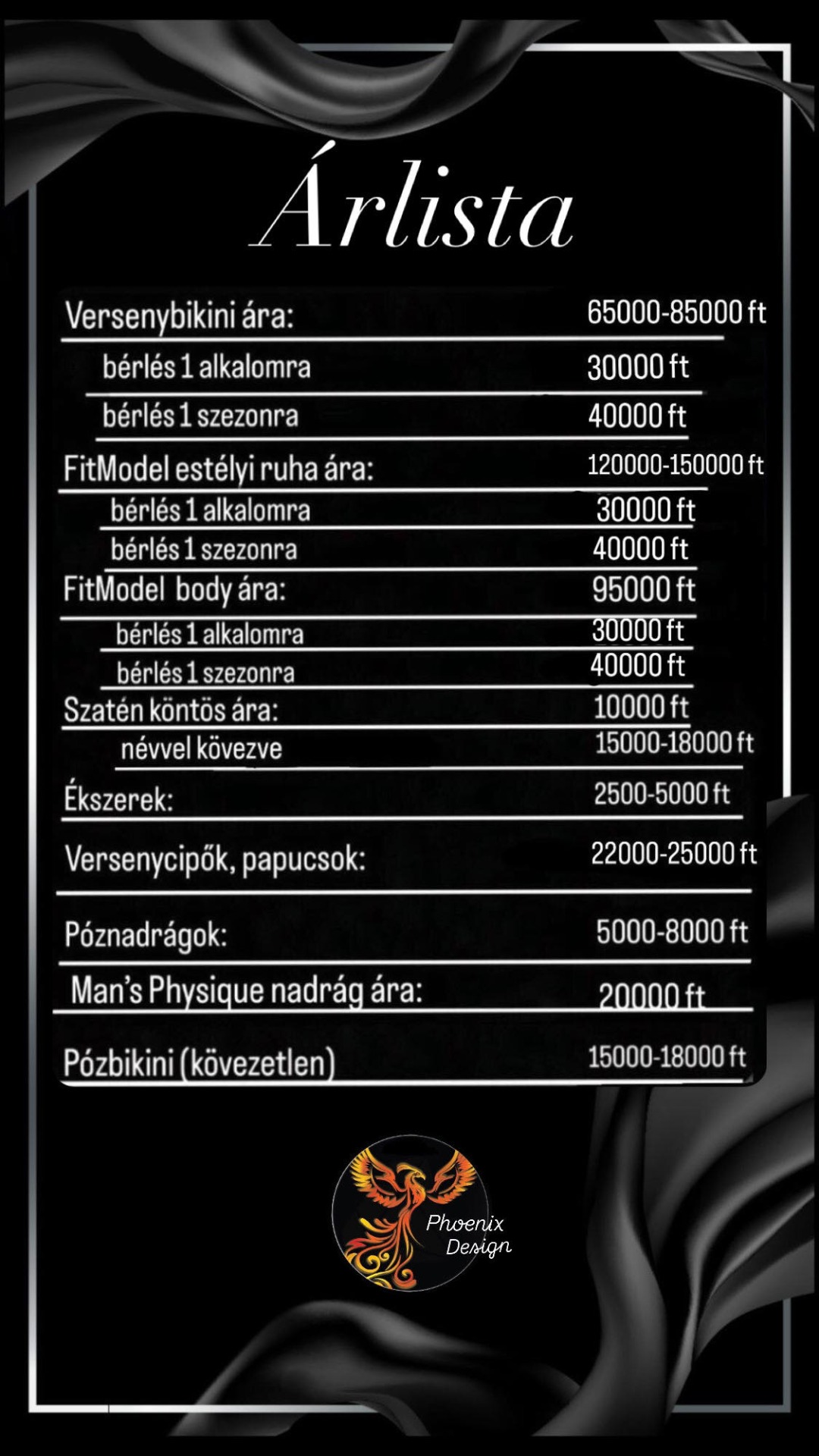"Csak ajánlani tudom ! Edit nem csak szakmai tudásával és precizitásával győzött meg arról, hogy márkája a tökéletes választás mielőtt színpadra lépek, hanem kedvessége és a szakmája iránti elhivatottság/alázat az, ami miatt azt mondom, érdemes a Phoenix Design-t választani! A versenyfelkészülés kulcsfontosságú pontja a bikini/body/estélyi kiválasztása, ehhez egy igazán megbízható, barátságos környezetet kínál a Phoenix Design teljes szívemből ajánlom minden versenyzőnek.! MIKITA ZSUZSANNA LILLA Zalaegerszeg